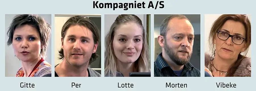 Gennem hele forløbet følger vi medarbejderne på Kompagniet A/S – et fiktivt kontor, hvor skuespiller gennemspiller en række konfliktfyldte situationer.